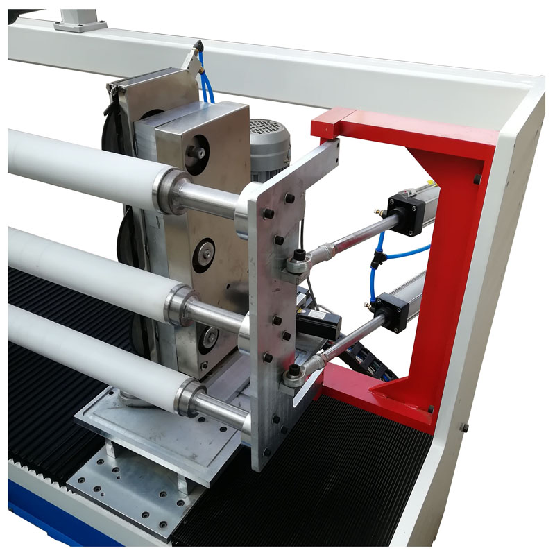 4. 圓刀自動角度調整,使用伺服馬達計算圓刀角度轉向,因應不同材料做不同角度變化